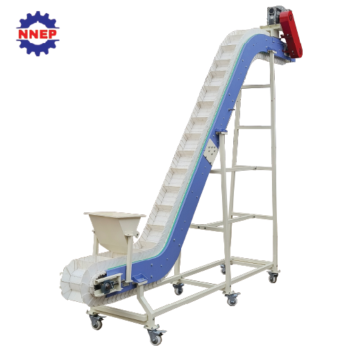 • This type of conveyor is ideal for applications that require products (nuts, beans, fruits, vegetables, meat, poultry, and seafood) to be transported vertically with minimal spillage and damage.